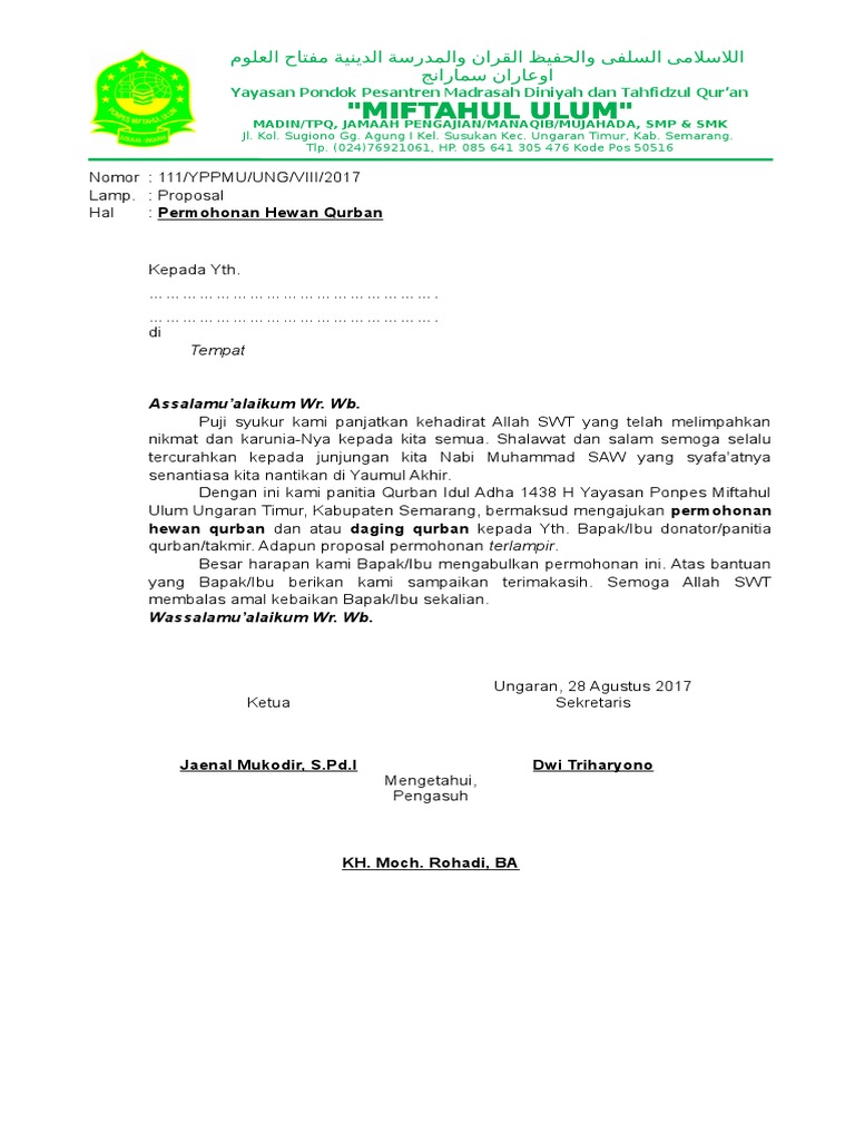 Contoh Surat Permohonan Hewan Qurban - Contoh Surat Himbauan Qurban - Download Kumpulan Gambar / Syari'a syari'atka tkan n untuk untuk menyem menyembel belih ih hewan hewan qurban qurban supaya supaya merek mereka a menyeb menyebut ut nama nama allah allah terhadap binatang ternak yang.